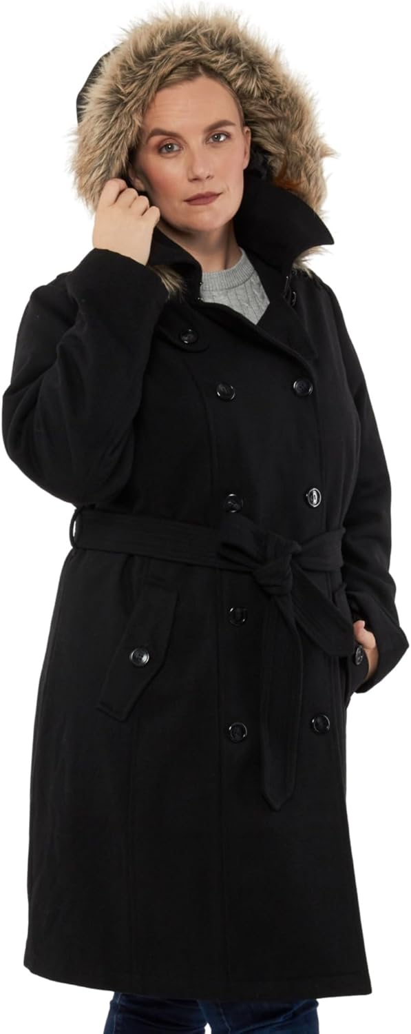 Womens Wool Blend Trench Coat By Alpine Swiss Product Features: Shell: 30% wool 70% polyester and Lining: 100% polyester Plus Size Fit - Available now in sizes 2X and 3X only. Designed with a roomy fit that layers comfortably over sweaters. Please refer to the measurement chart in the images to confirm your best fit. Warm Wool Blend Construction - Made from a durable wool blend shell with a quilted satin lining that adds comfort and warmth during cold weather. Classic long silhouette that offers generous coverage. Timeless Design Elements - Double breasted button front, waist belt for a flattering shape, shoulder epaulets, gun flap detail, and a back vent for easy movement. A polished and refined look for everyday wear Removable Hood with Faux Fur Trim - Features a hood with soft faux fur trim that can be removed to switch between a sleek classic trench style and a cozy cold weather look. Functional Storage and Comfort - Two front angled welt pockets keep your hands warm and hold essentials securely.