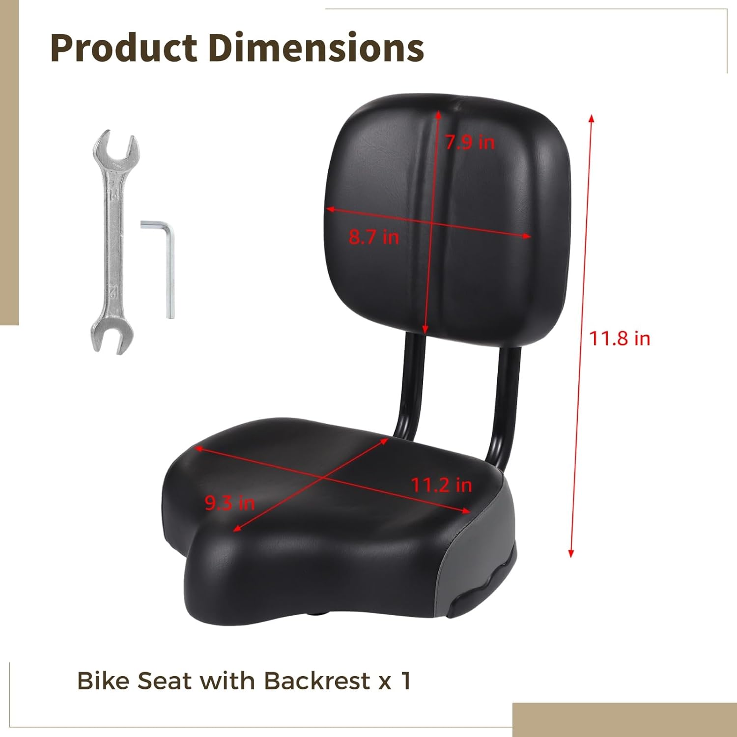Bike Seat with Backrest,Extra Wide Bicycle Seat with Back Support,Extra-Large Bicycle Seat with Padded PU Cushion Saddle Fit for Tricycle Mountain E-Bike, Includes Installation Tools