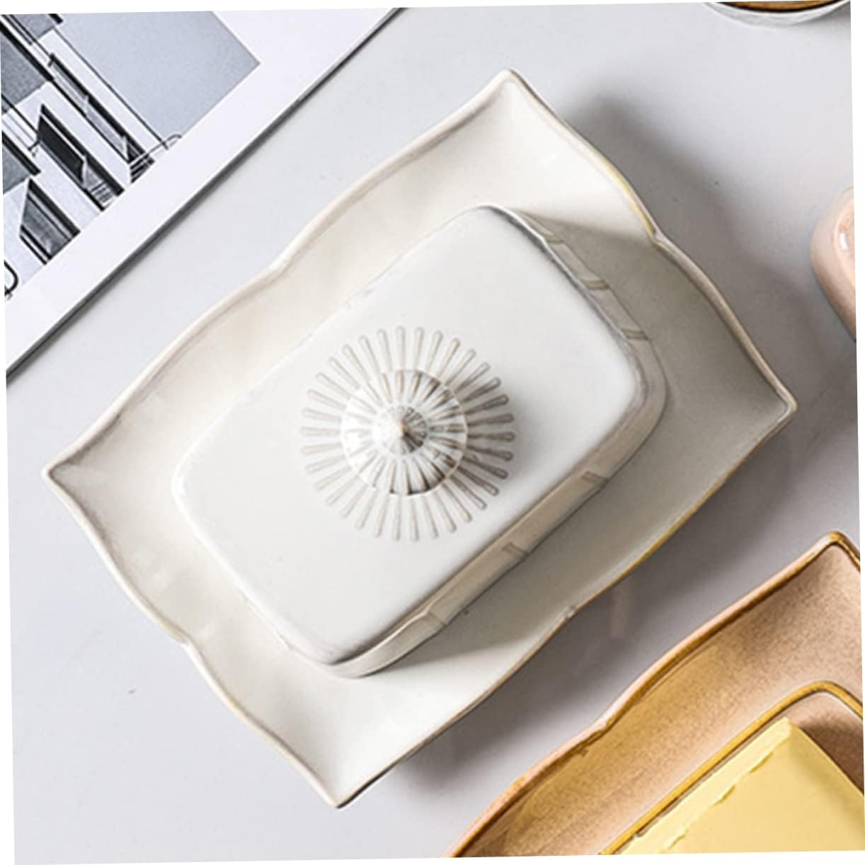 Package List 1 x Set of Butter Box with Lid Characteristics -Material: Ceramic. ceramic butter dish with lid - , construction to last lifetime of use. Beautifully patterned and well made, suitable for most home decoration styles butter serving dish. - This is a very convenient and small plate that can be applied to your daily life well cute butter dish. - Equipped with a matching creative lid to keep the and fresh for people to use long time butter dishes. - Wonderful size for storing butter sticks, cakes, cheese, fruits, bread, ham and other things terracotta butter dish. - The product is a perfect assistant for kitchens, hotels, restaurants, food stores, restaurants, etc cream color butter dish.Goods Informationcovered butter dish event, and can hold butter, cheese, etc.serving plate The dessert display plate is made of material.ceramic butter dish It is , family reunions, parties, birthdays, anniversaries, engagement, birthday party