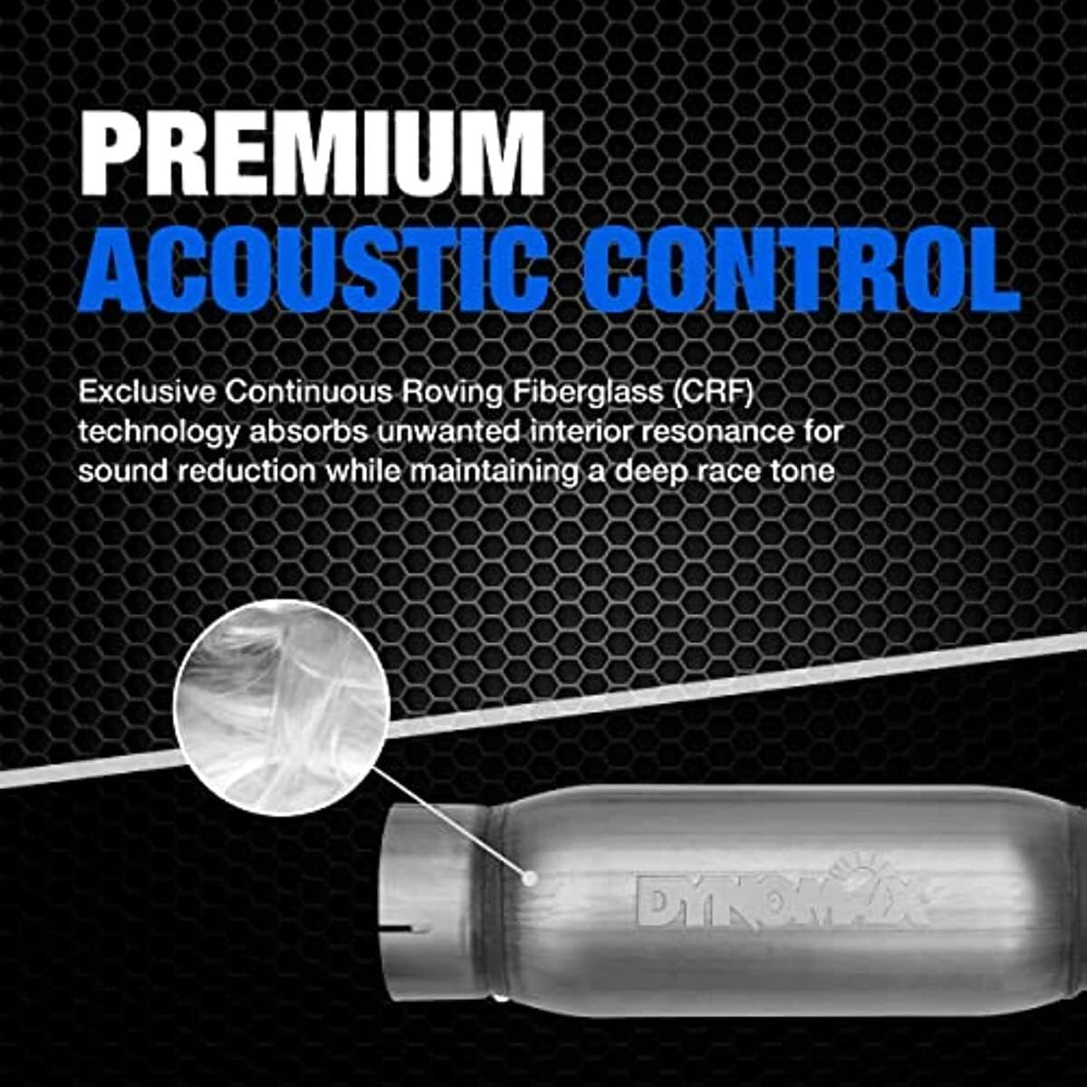 DynoMax Race Bullet mufflers feature 100-percent welded construction for lifelong durability. The 'Pure Unadulterated POWER' and lightweight, compact design make it the ultimate race muffler. The unrestricted, straight-through design is dyno tested and track proven. Each muffler uses our exclusive Contin uous Roving Fiberglass (CRF) Technology which helps provide up to a 4 dbA sound reduction, on most race applications, while maintaining a deep race tone.