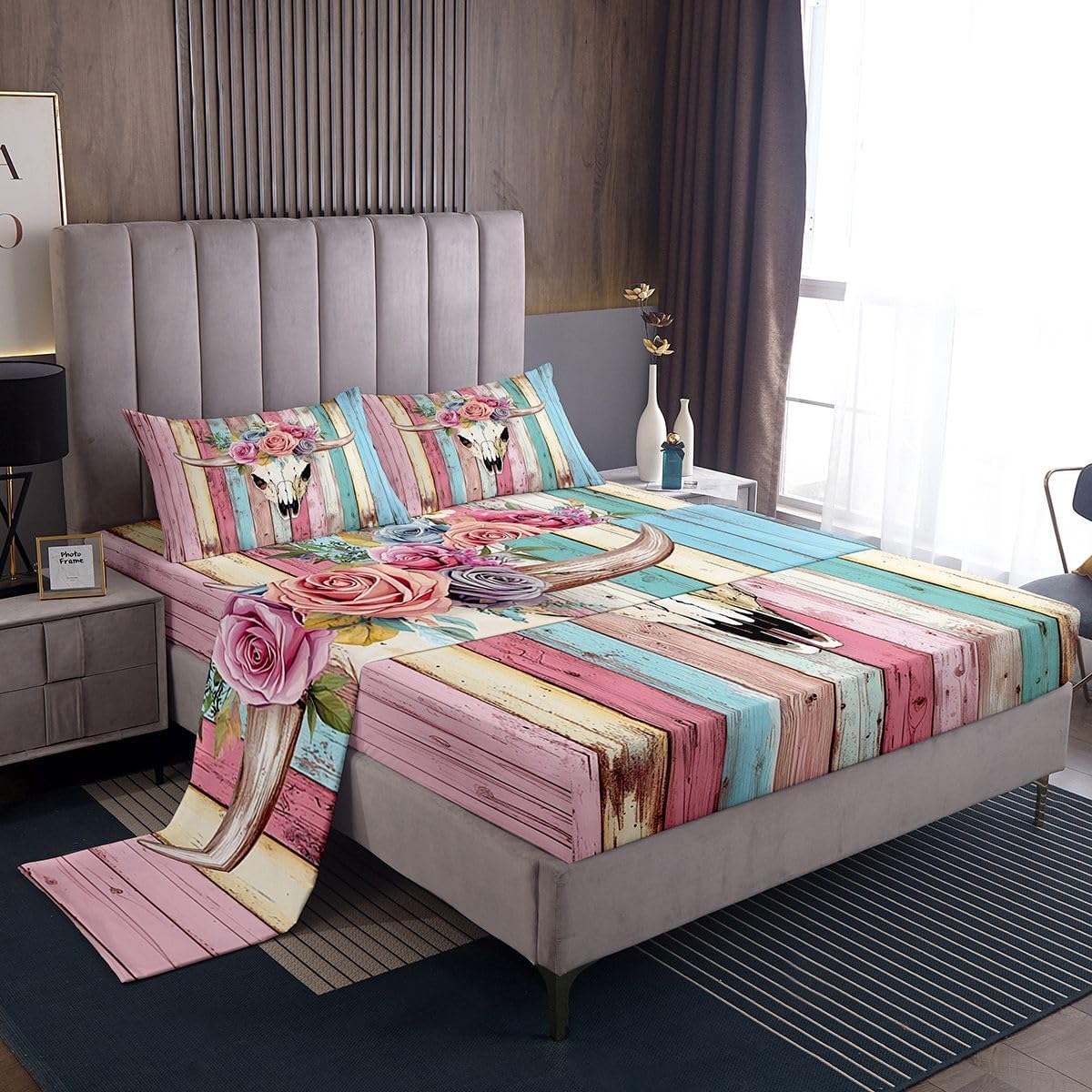 Size Information Twin size: 1 Fitted Sheet 39"x75"x16", 1 Flat Sheet 96"x66", 1 Pillowcase 20"x30". Full size: 1 Fitted Sheet 54"x75"x16", 1 Flat Sheet 96"x81", 2 Pillowcases 20"x30". Queen size: 1 Fitted Sheet 60"x80"x16", 1 Flat Sheet 102"x90", 2 Pillowcases 20"x30". King size: 1 Fitted Sheet 78"x80"x16", 1 Flat Sheet 106"x90", 2 Pillowcases 20"x36". Versatility We have many kinds of styles for you to choose. You can easily find a product that suits the style of your room. The item is not only Suitable for your home, bedroom, guest room, living room, etc or rv, your families, friends, relatives, boyfriend, girlfriend. Modern Design The luxury aesthetic bedding sheets are made reactive printing and dyeing process. The pattern is clear, the color is and bright, which will not fade after repeated washing. Personalized As a manufacturer of digital printed home textiles, we follow current trends and bring you the latest and stylish home textile products. The item will make the room decorated in exquisite taste.