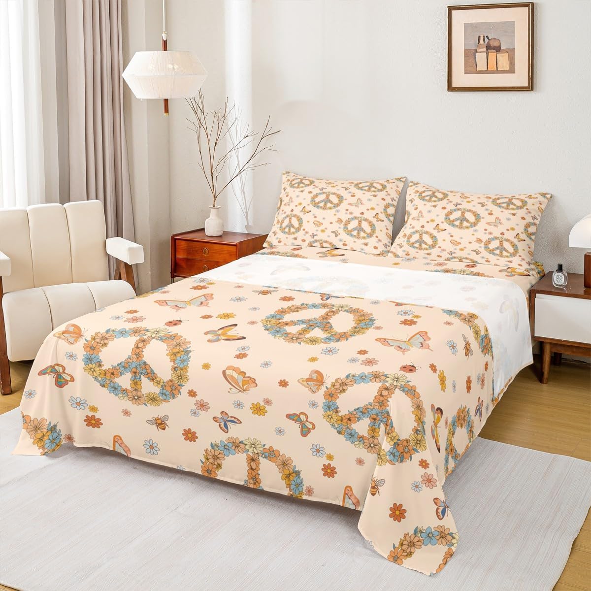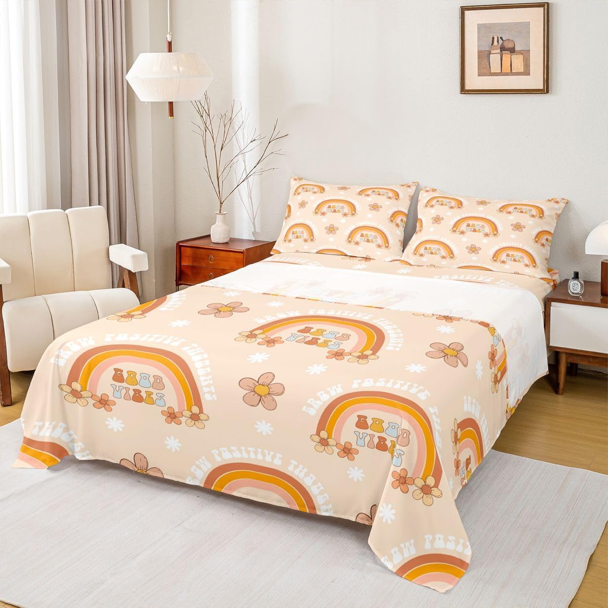 Elevate your bedroom decor with this exquisite bed sheets set featuring an aesthetic design. Inspired by all the beautiful things in the world, this stylish artwork captures the essence of vibrant pattern on soft, cozy bedding. The vibrant colors and intricate details create a serene and calming atmosphere, suitable for a peaceful night's rest. Crafted from ultra soft materials, this sheet set is not only visually stunning but also incredibly comfortable and stylish. Whether you're seeking a touch of modern charm or a vintage oasis, this bed set will transform your bedroom into a tranquil retreat. Elevate your sleeping experience with this artistic masterpiece.