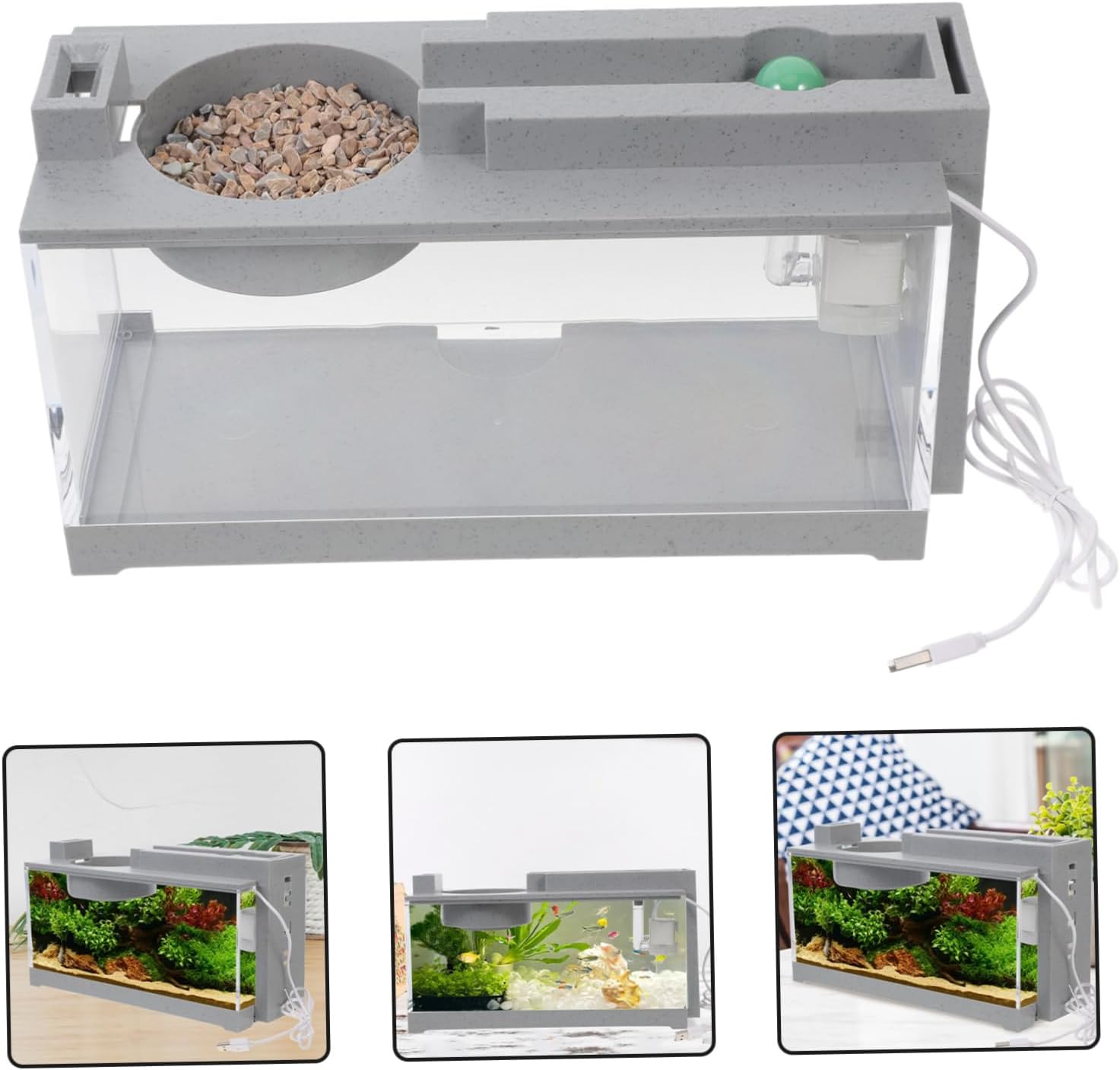 Package Include 1 x household small fish tank Features -Material:ABS aquarium fish tank -Size:31.50X16.50X13.00cm/12.38X6.48X5.11in betta tank -Note: with USB pump fish tank office -Color:Grey office desk fish tank -This compact and charming fish tank is designed to fit in small spaces, making it an ideal addition to desks or bathrooms fish tank for betta fish. -With its elegant and stylish design, this fish tank serves as a beautiful piece of home decor, bringing a and vitality to any room betta fish tank. -Ideal for dormitories, this fish tank takes up very little space while providing a delightful and calming presence betta fish bowls modern. -Enhance your work environment with this lively fish tank, which adds a refreshing and vibrant touch to any desktop aquarium. -Maintaining this fish tank is a breeze, ensuring that the water clean and healthy for your aquatic pets with minimal effort aquarium tank.Goods Descriptionfish aquarium Designed for easy cleaning, this mini aquarium with lightweight and compact design, making it an for any home.betta fish bowls compact size allows it to fit seamlessly on your desk or in your bathroom, adding a touch of nature to your space.fish tank accessories Discover the blend of functionality and aesthetics with our micro landscape fish tank