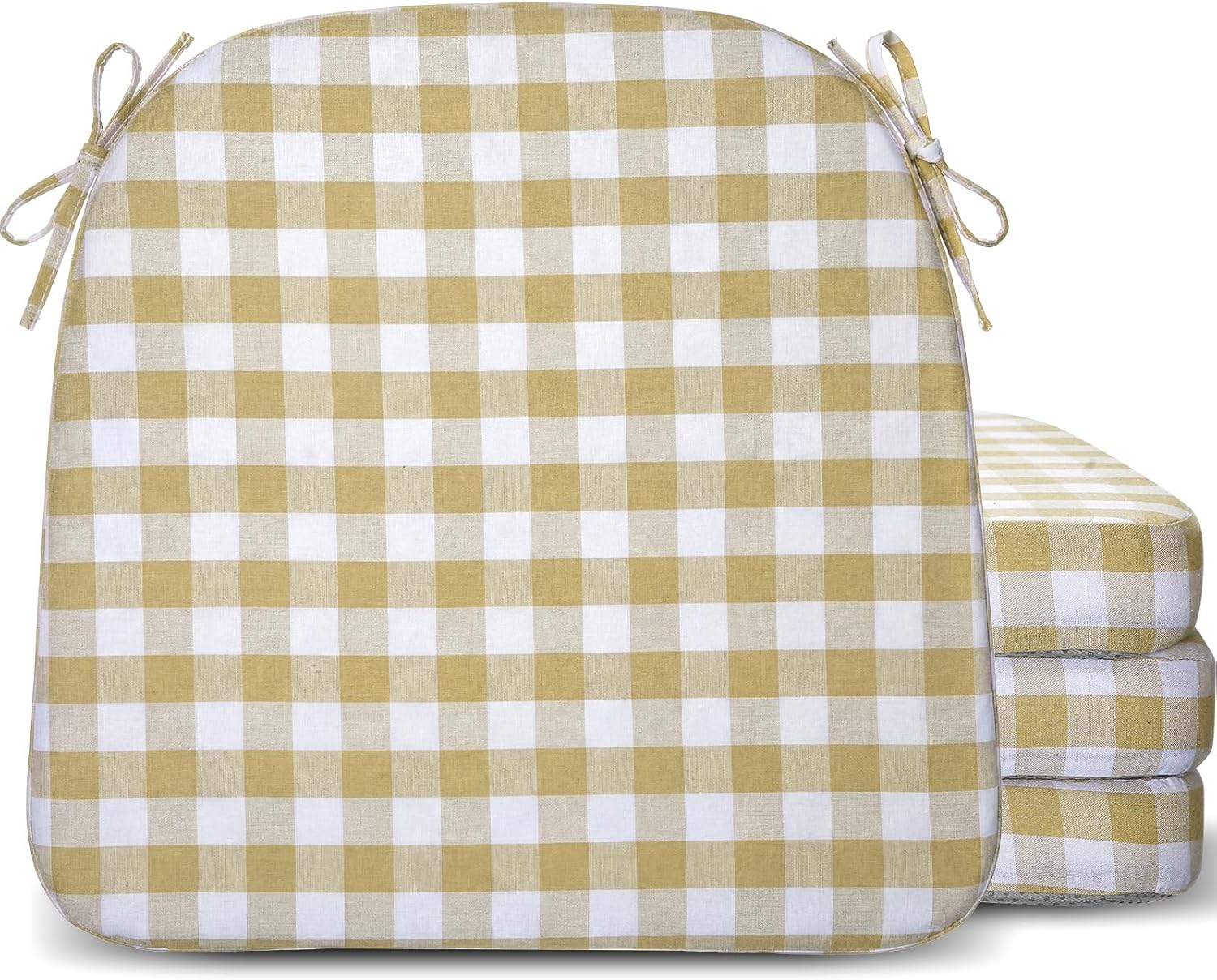 Features: Versatile Application in Multiple Scenarios: This cushion is not only suitable for dining chairs but also for bedrooms, living rooms, outdoor patios, and other occasions. Whether for family meals, office breaks, or outdoor activities, it provides excellent support and a comfortable experience, meeting diverse needs in different environments and improving quality of life. Practical Gift Choice: The design is simple and elegant, combining aesthetics and practicality, making it suitable for giving to friends, neighbors, and family. As a gift, it shows care and thoughtfulness, suitable for various holidays and occasions. Whether for personal use or as a gift, it brings a warm and comfortable experience, making it an ideal choice for enhancing home life. Specifications: Fill Material: high density foam Color: yellow white Size: about 17x 16 x 2 inches/ 43 x 40 x 5 cm Package includes: 4 x Chair Cushion Notes: Manual measurement, please allow slight errors on size. The color may exist a slight difference due to different screen displays.