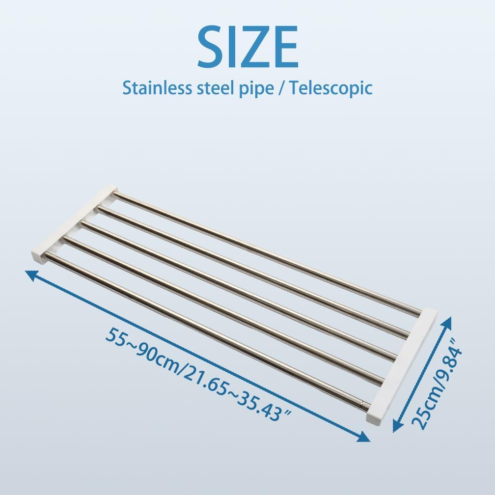 Material: Stainless Steel/PP Plastic Color: White Dimensions About: (25-40) X 25cm/ (9.84''-15.74'') X 9.84'' (35-60) X 25cm/ (13.77''-23.62'') X 9.84'' (55-90) X 25cm/ (21.65''-35.43'') X 9.84'' (75-130) X 25cm/ (29.52''-51.18'') X 9.84'' (25-40) X 36cm/ (9.84''-15.74'') X 14.17'' (35-60) X 36cm/ (13.77''-23.62'') X 14.17'' (55-90) X 36cm/ (21.65''-35.43'') X 14.17'' (75-130) X 36cm/ (29.52''-51.18'') X 14.17'' (25-40) X 43cm/ (9.84''-15.74'') X 16.82'' (35-60) X 43cm/ (13.77''-23.62'') X 16.82'' (55-90) X 43cm/ (21.65''-35.43'') X 16.82'' (75-130) X 43cm/ (29.52''-51.18'') X 16.82'' Packing list: 1x Closet Shelf 1x Instruction Manual
