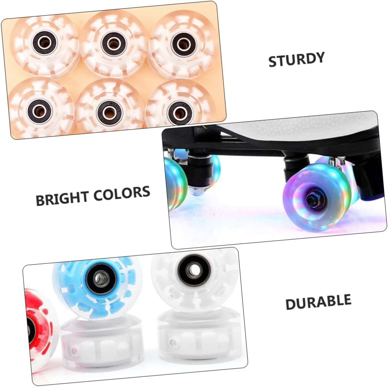 • Skating wheels:these roller skate wheels are good enough to be extra grippy on outdoor surfaces like streets and sidewalks,Skating Glowing Wheel