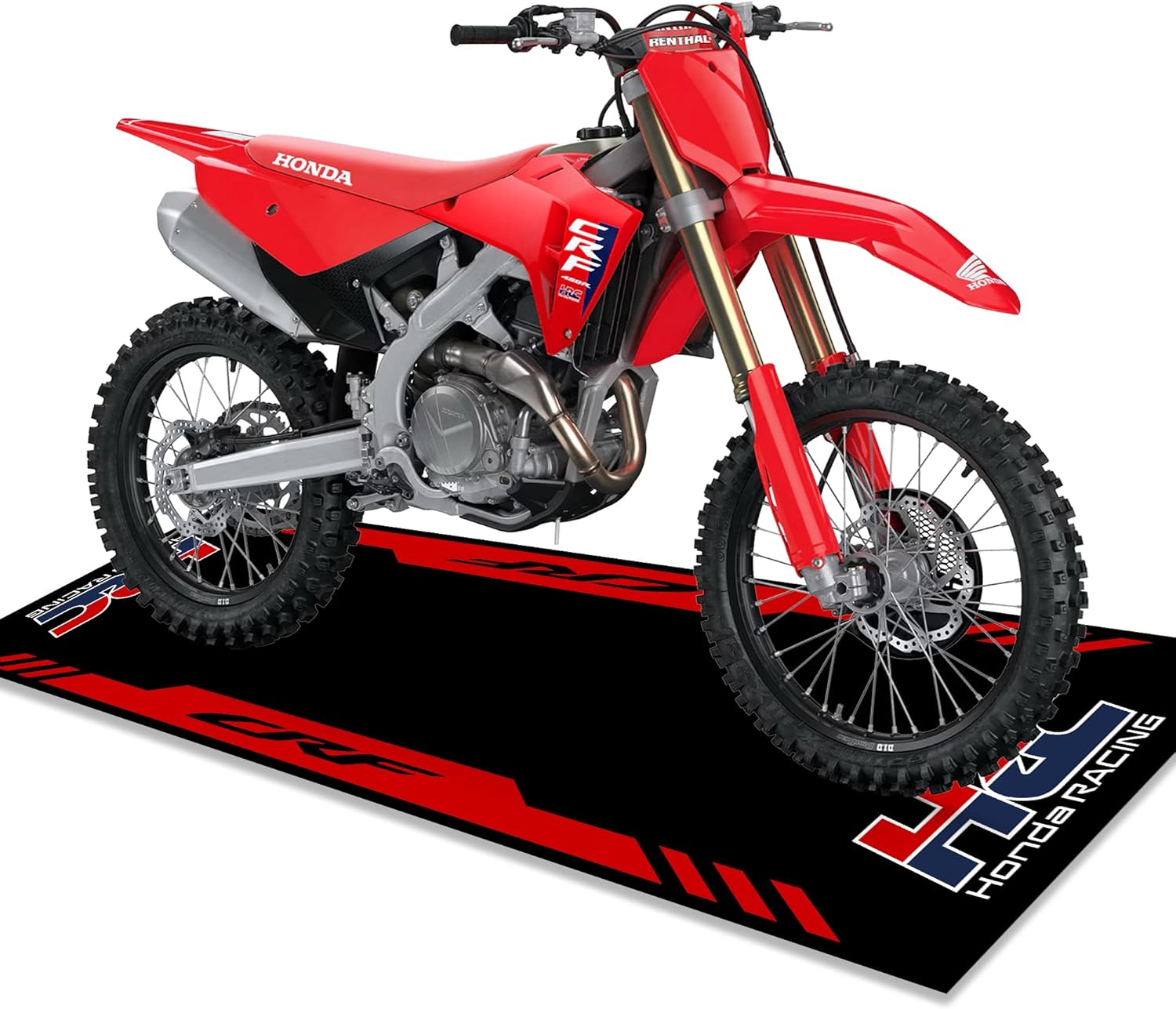 Floor mats for motorcycles can be used in the garage, the pit or even in your house. Compatible with Off Road motorcycles , Adventure Bikes, Sport Bikes, Harleys, ATV & UTV.