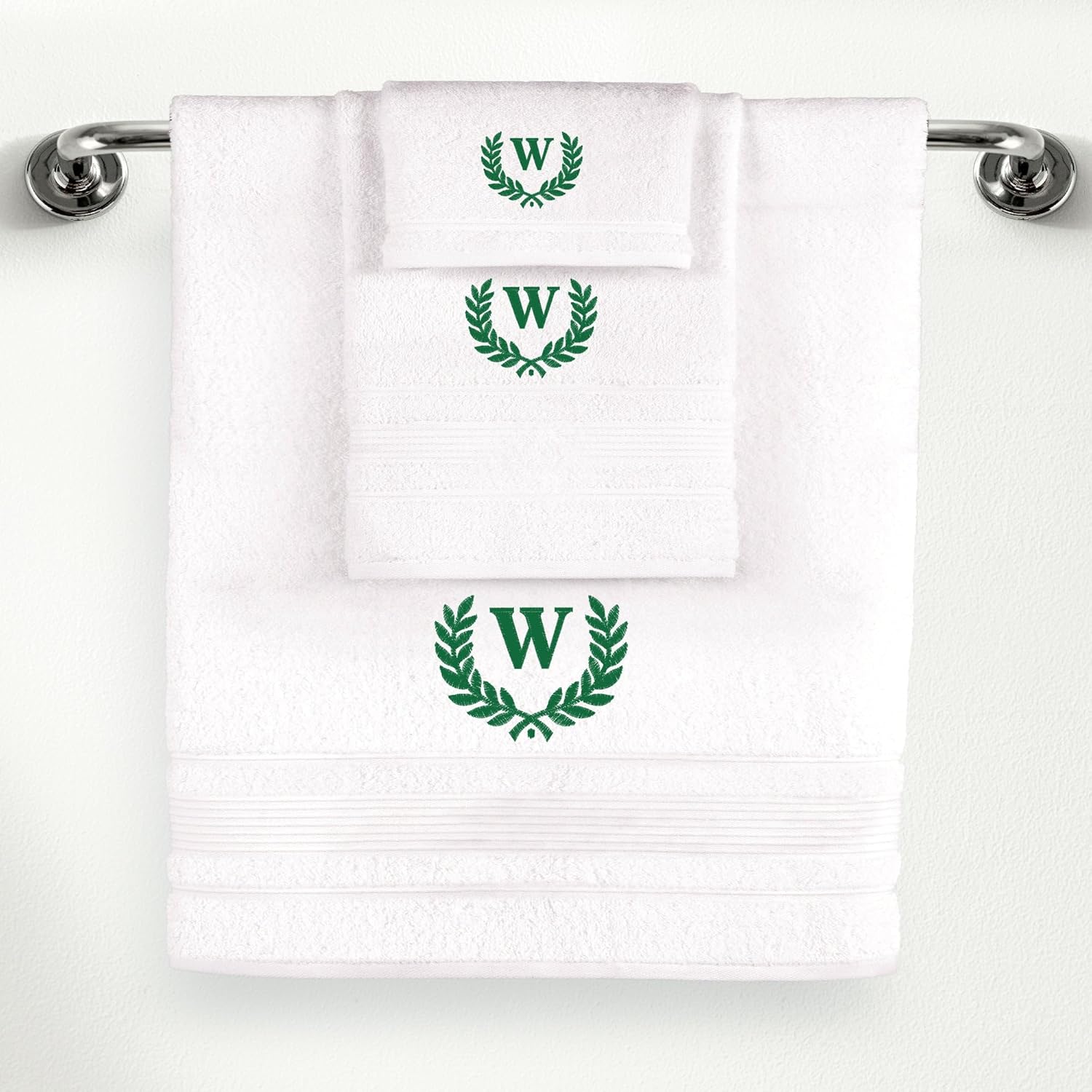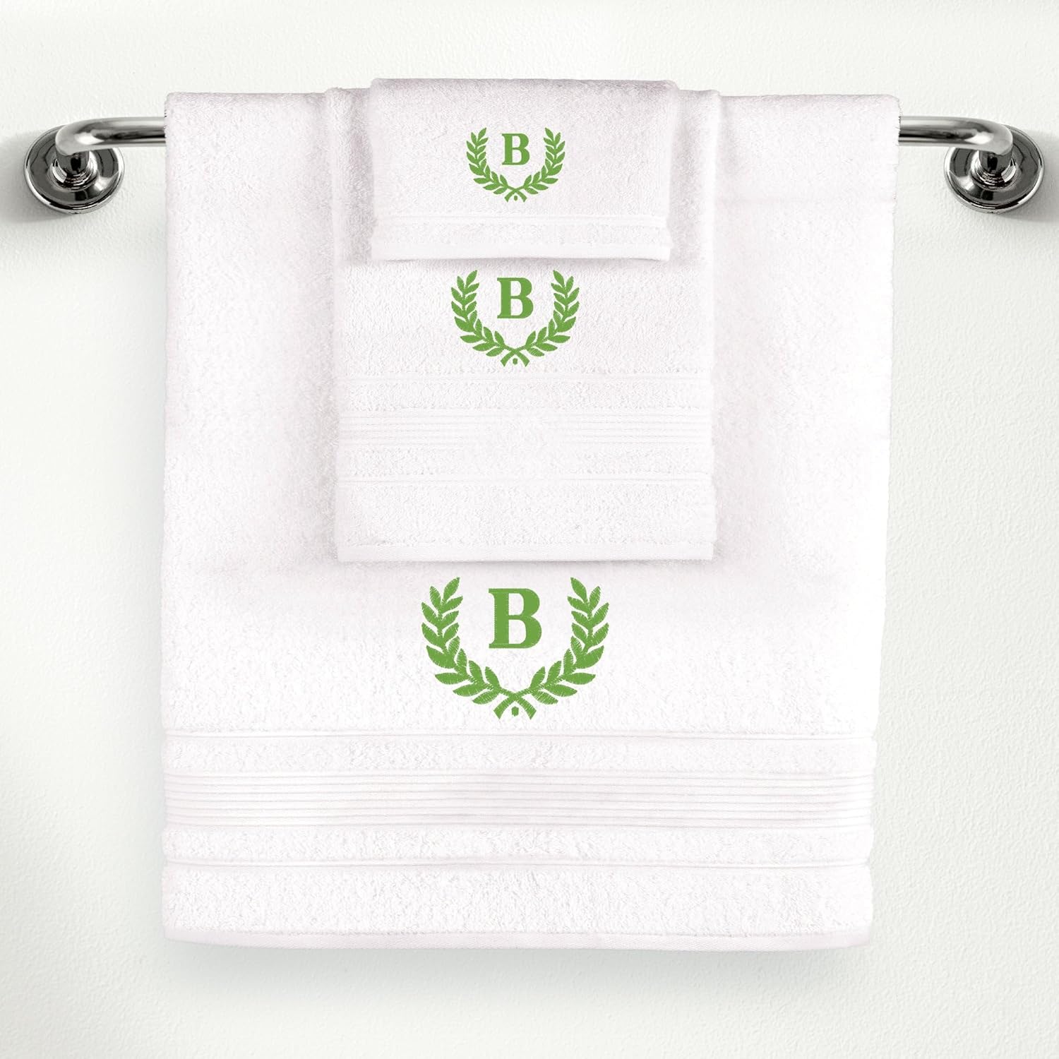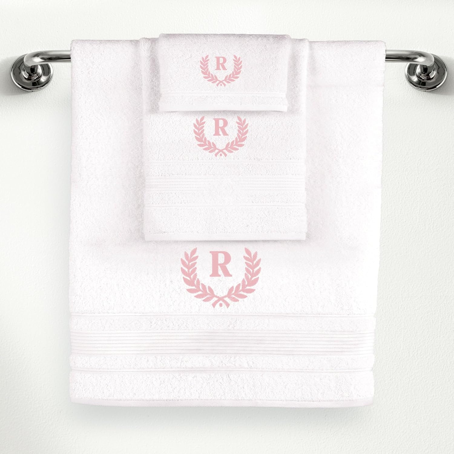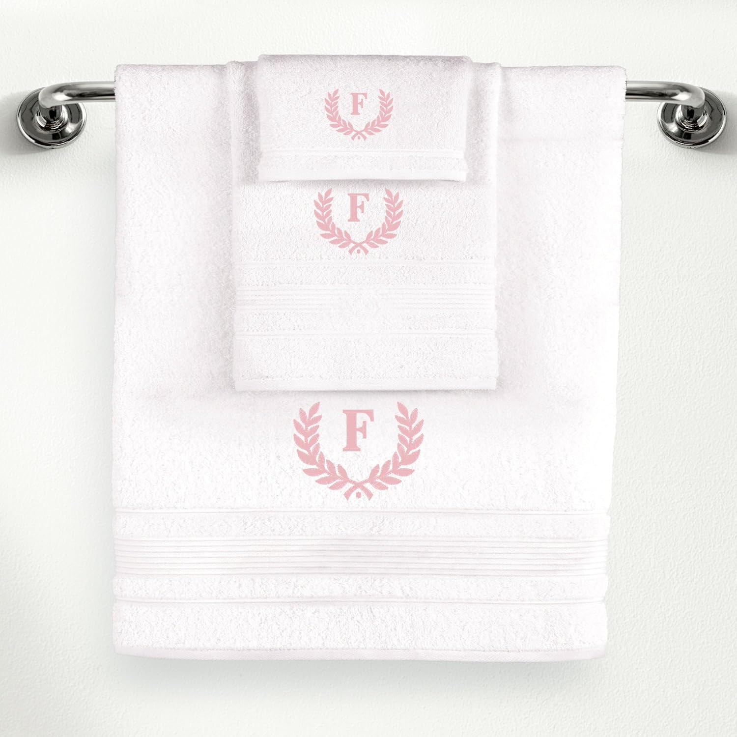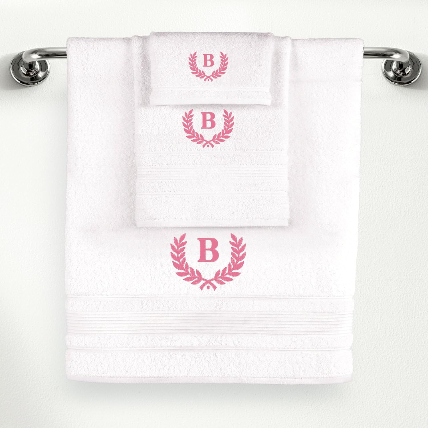 Elevate your bath or kitchen with our personalized 3-piece towel set, crafted from premium 100% cotton for superior softness and absorbency. Each piece - a large bath towel (27x54 inches), a medium hand towel (16x30 inches), and a small washcloth (13x13 inches) - bears a unique Wheat Design, elegantly embroidered with your choice of letter in vibrant pink thread. This customizable set not only adds a touch of elegance to your space but also makes a thoughtful, personalized gift for any occasion. Easy to care for, simply machine wash in cold water with mild detergent, tumble dry low or hang dry.