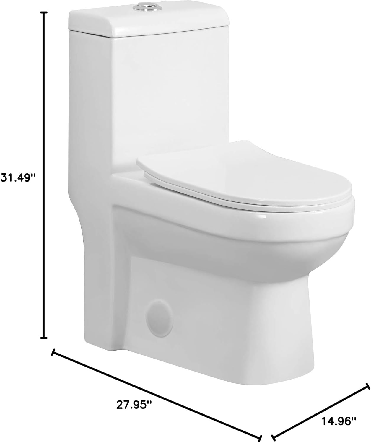 What makes one-piece toilets special? One-piece toilets offer numerous advantages over traditional two-piece models. Their seamless design enhances the modern aesthetic of any bathroom while simplifying cleaning and maintenance. With fewer crevices for dirt to hide and a reduced risk of leaks, upkeep is a breeze. Also, one-piece toilets offer an ergonomic seating position, ensuring comfortable bathroom use. If you're on the lookout for a luxurious, durable, and comfortable one-piece toilet for your home, we have exactly what you need. Upgrade your bathroom experience with the Royal Legend One-Piece Toilet. Featuring an elongated comfort height design, this toilet makes way for optimal comfort during use, making it perfect for individuals of all ages. With its soft-close seat, you'll never have to worry about noisy, disruptive toilet lids again. With a dual flush system, you can choose between a 0.8 or 1.28-gallon flush, helping you save on water usage without compromising on efficiency. The toilet's quick-release seat also allows for easy removal and cleaning. With its sleek glazed finish and leakproof design, this one-piece toilet is not only stylish but also highly durable. It withstands rust, corrosion, and stains, maintaining its pristine appearance for many years. Whether you have a small bathroom or a spacious water closet, this compact toilet fits seamlessly into any space, providing superior comfort and functionality. Here are more reasons to love our one-piece toilet: - Overall size: 31.49" H X 14.96" W x 27.95" D - Tank size: 12.13" H x 14.17" W x 6.25" D - Flush valve diameter: 3" - Trapway diameter: 2" - Includes high-quality wax ring, floor bolts, installation guide Give your bathroom a touch of luxury and sophistication. Add the Royal Legend One-Piece Toilet to your cart NOW!