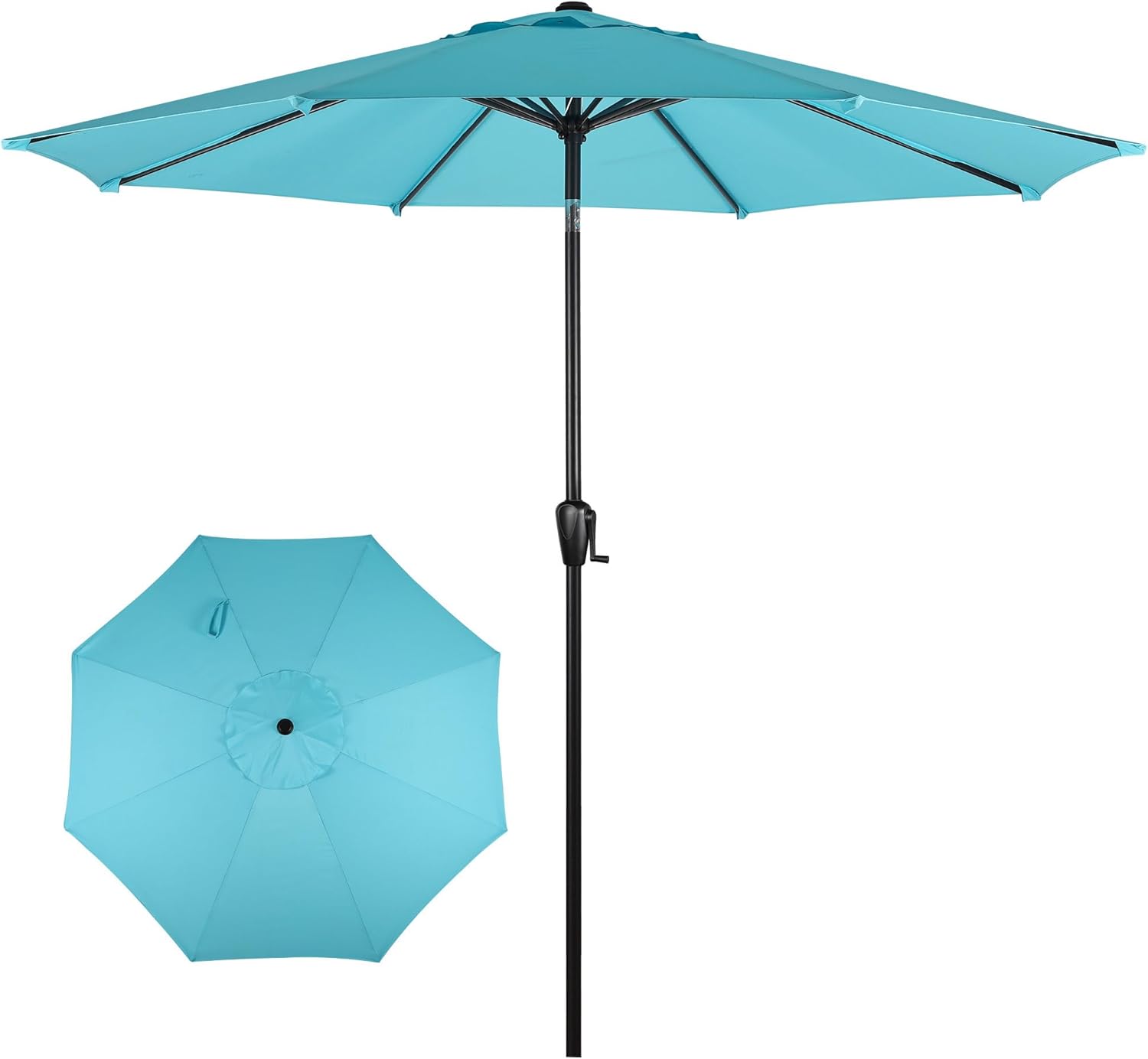 Bring vibrant and lasting shade to your outdoor space with this 9' Round Market Umbrella by Sun-Ray. The 180g canopy offers upgraded colorfastness and water resistance, blocking harmful UV rays. Easily adjust the canopy angle with the push-button tilt mechanism, and set up and take down your umbrella quickly and effortlessly with the smooth hand crank canopy lift and convenient push-button lower pole. The powder-coated steel frame provides rust and corrosion resistance, enhancing its durability. Fits a patio table that has 1.5in. umbrella slot. Common applications include: patio umbrella, porch umbrella, camping shade, deck umbrella, and more. Enjoy comfortable and inviting outdoor space with the 9' Round Market Umbrella by Sun-Ray.