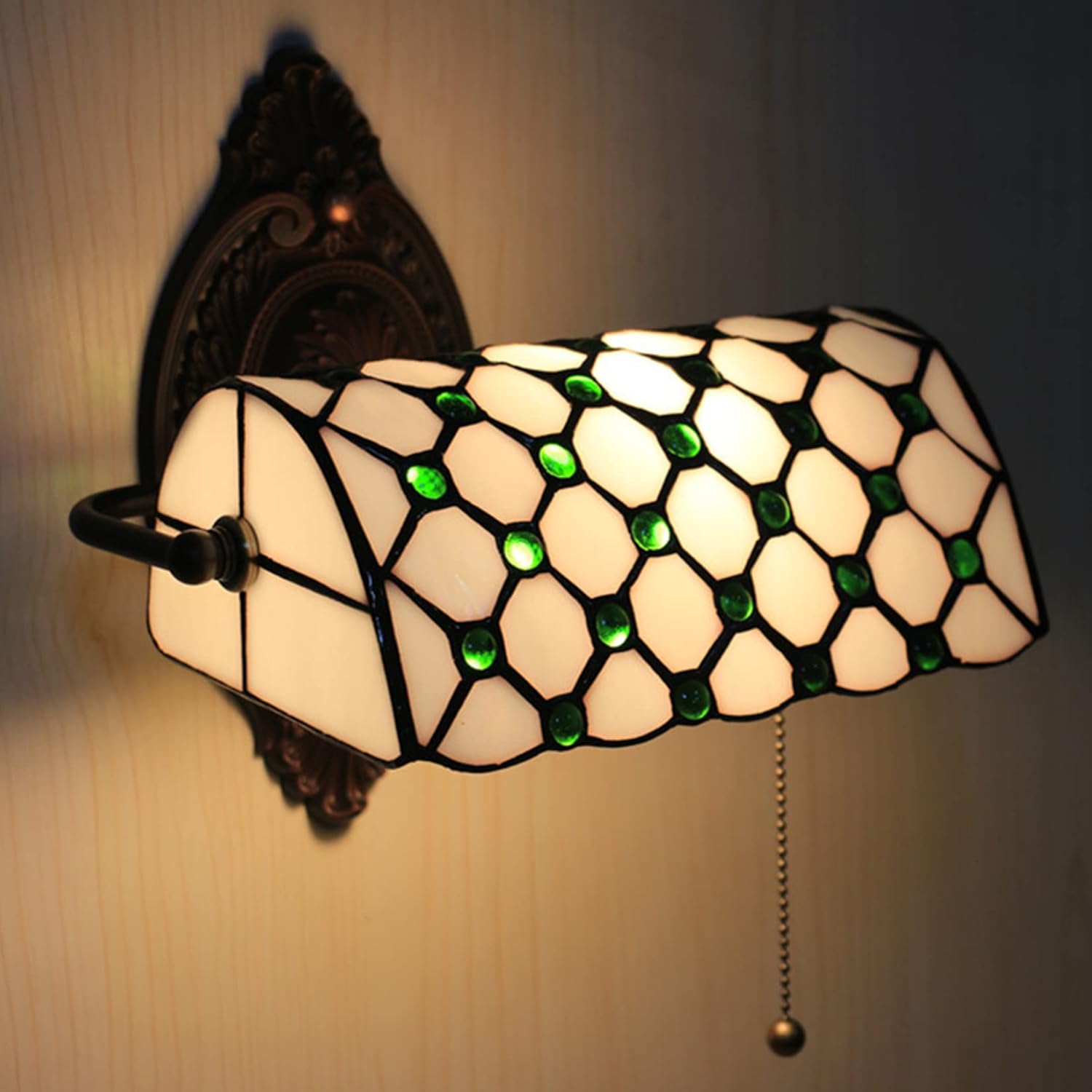 Tiffany Style Mediterranean Wall Sconce Lamp Stained Glass Wall Lamps with Crystal Beads for Bedroom Living Room Aisle Bedside, E27 ● Product Specifications:Name: Vintage Wall Light Fixtures for BedroomMaterial: stained glass (handmade) + zinc alloy baseVoltage: 110-240 (V)Lamp source type: E27*1 (no light source)Lamp size: lampshade width 26.5cm (10.4 in), base width 22cm (9 in ), base height 25cm (10 in)Applicable places: living room, study room, office, bedroom, bedside, bar, corridor, aisle, entrance, etc.● Notice:If you have any questions, please contact us by email and we will reply for you within 24 hours. Welcome your purchase, thank you.