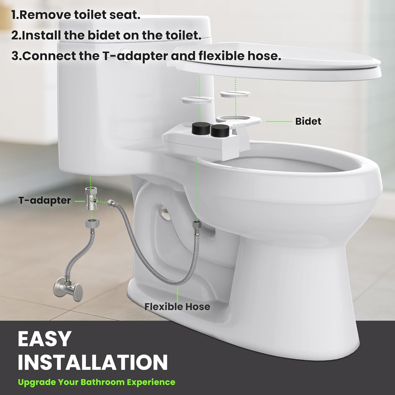 | Included Components | Extended Screws, Install Guide, Reversible Bidet, Teflon Tape, Water Supply Hose |