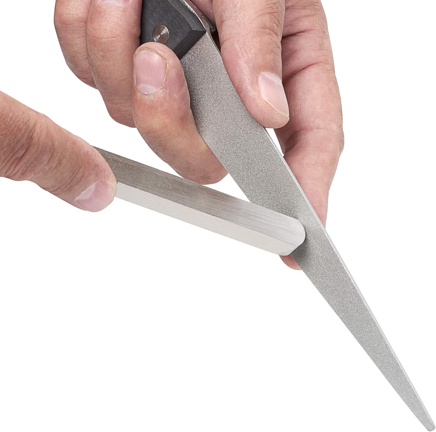 Product Description This unique 6-inch diamond taper file solves many of the problems that can not be addresses with a flat surface diamond tool. The file is half round on one side and flat on the other side and solves the problem of sharpening rounded surfaces. The file tapers to a fine point and intricate sharpening can now take place in hard to sharpen instruments such as turning and carving tools. From the Manufacturer A new and unique 6-Inch diamond taper file solves many of the problems that can not be addresses with a flat surface diamond tool. The file is half round on one side and flat on the other side and this solves the problem of sharpening rounded surfaces. The file tapers to a fine point and intricate sharpening can now take place in hard to sharpen instruments such as turning and carving tools.