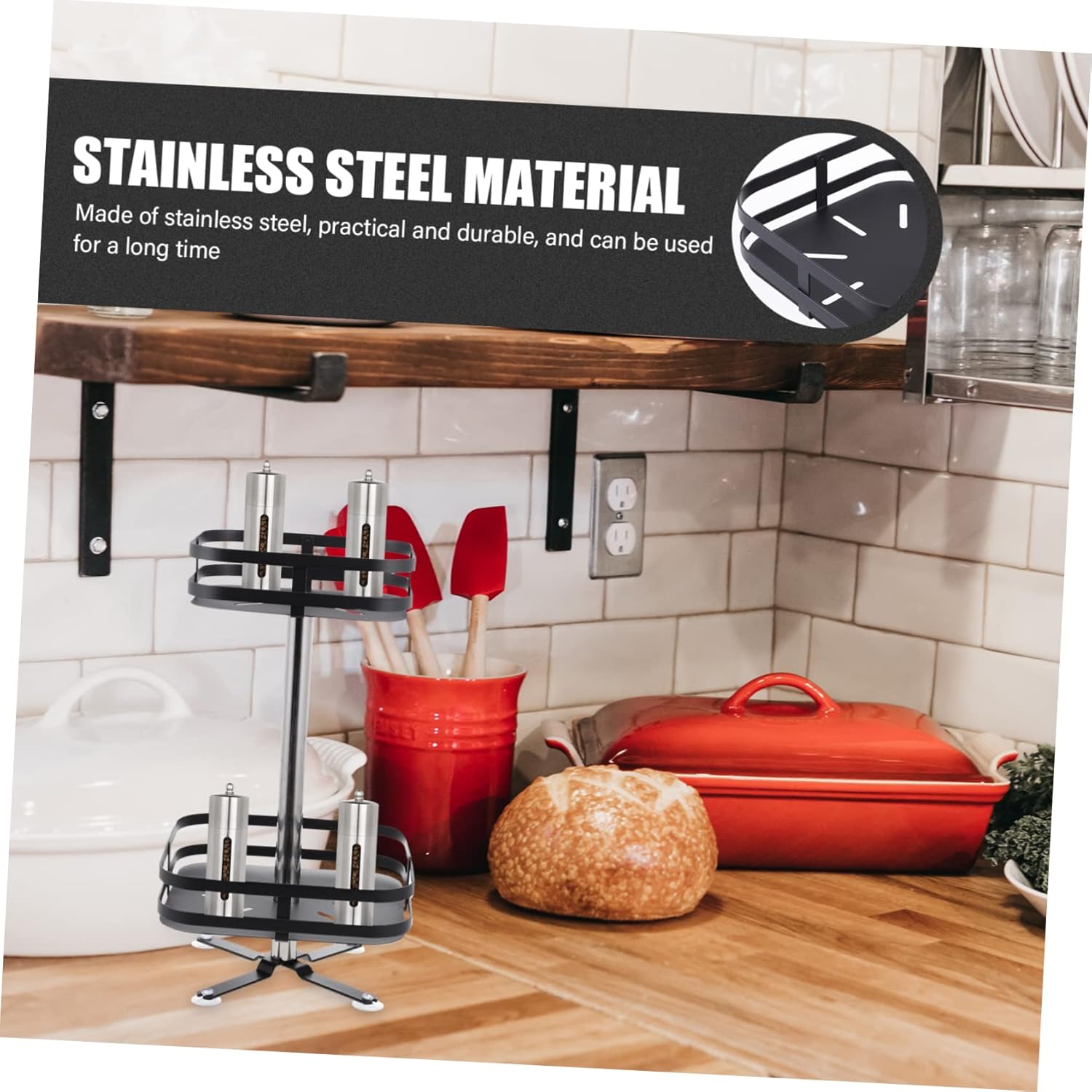 Package Include 1 x condiment storage rack Characteristics -Material: Carbon steel, stainless steel Kitchen Storage Rack. -Arrange spice jars, condiments and other items neatly; easy to handle and use Seasoning Storage Shelf. -Double-layer storage, large capacity, can store a variety of kitchen utensils and condiments, neatly stored, and takes up less space kitchen rack. -It is kitchen, bathroom and bedroom, organize the items you need, save space for you, and make your home bright and tidy kitchen storage shelf. -The rounded corner design does not hurt your hands, is convenient to carry, and the frame is more beautiful seasoning holder. -Manufactured with , and for a long term use Spice Bottle Storage Rack.Goods DescriptionMulti- layer Seasoning Holder Rack The double-layer design helps to save space.seasoning is very suitable to be placed in the corner of the counter in the kitchen, bathroom or bedroom, and put some essentials to make your house tidy and clean.countertop shelf This product is a shelf made of carbon steel and stainless steel